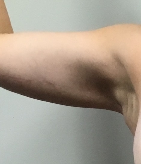 Scars are typically placed along the inner arm and fade over time. Most patients find them acceptable compared to the improvement in contour. When a patient does not have significantly sagging skin then the scars may be more visible than the loose skin and the patient has to consider the downside of scars versus the upside of modestly tightened arm skin.